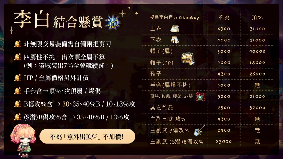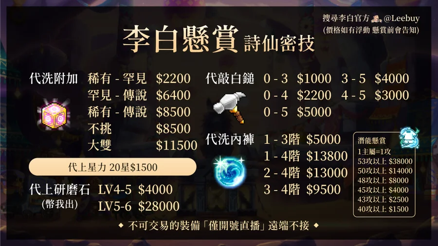【李白】全服懸賞྾皇家྾星力྾白鎚྾結合྾附加྾寶玉྾研磨石྾代洗內襯྾