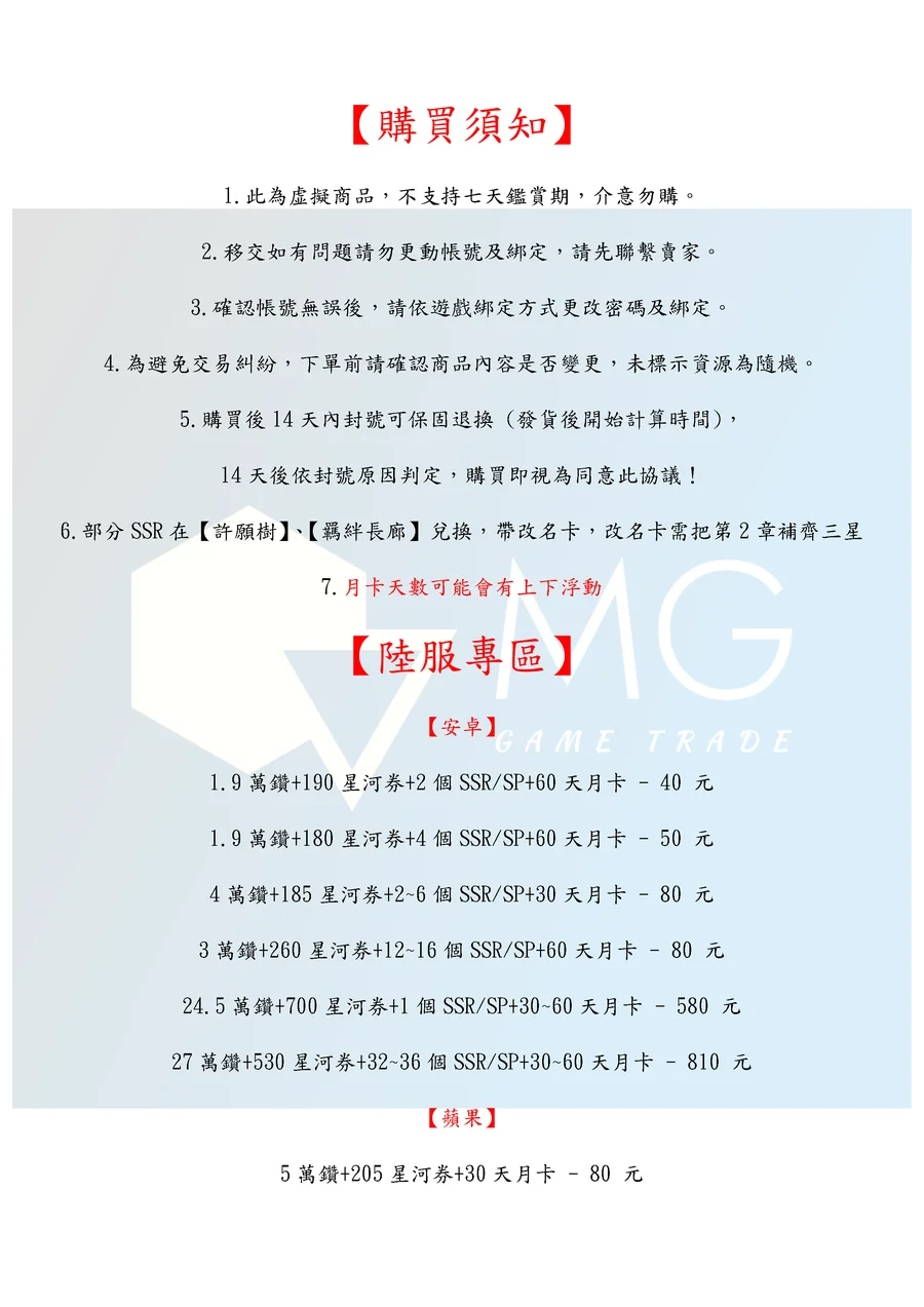 7.月卡天數可能會有上下浮動