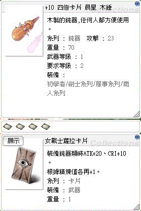🔥+10木錘 女戰士蘿拉卡片*4(ATK+120.CRI+80)