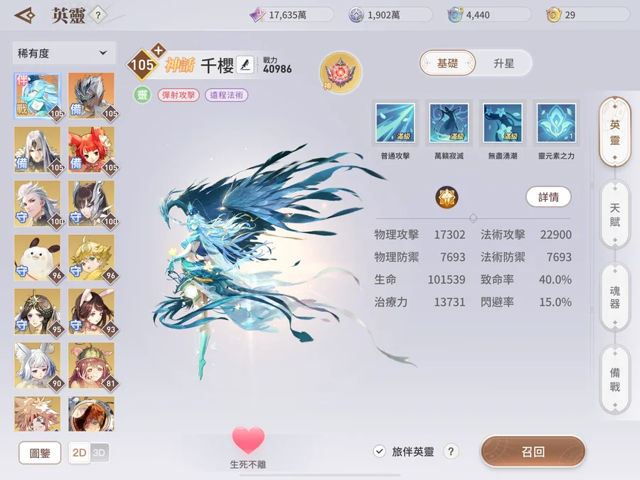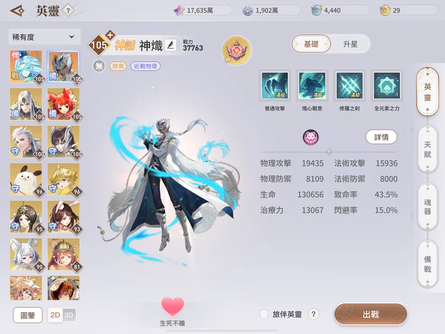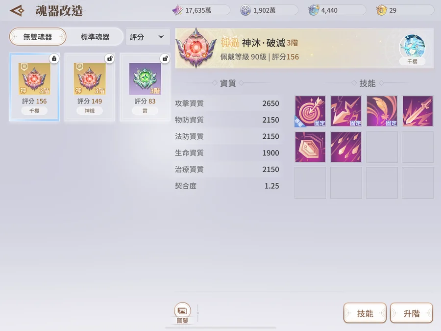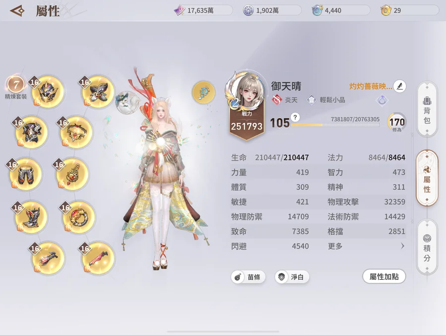 瑰寶值9845 成長值130萬 25萬戰力 千機狐鳴 綁定艾肯帳號可配合全改