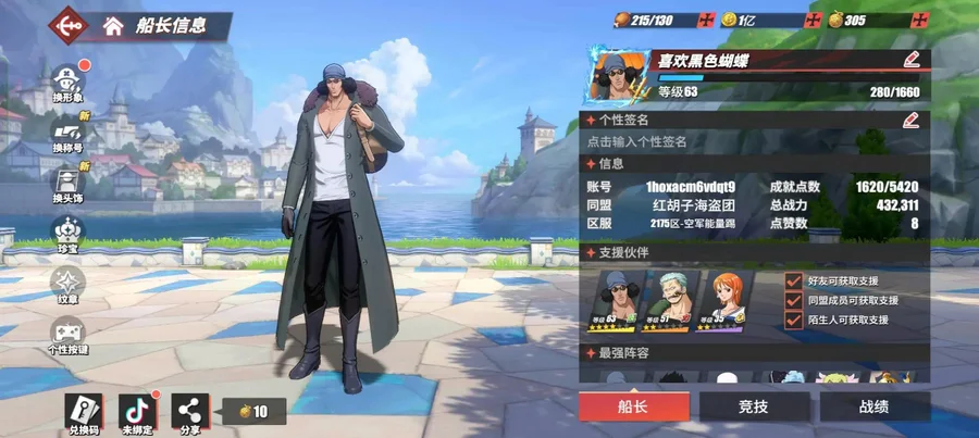 描述:低價出白馬,多弗朗明哥,4擋路飛,紅發(祈愿召喚還差30發),新世界庫贊。注意注意注意(祈愿召喚還有30,這30就是紅發不喜歡紅發11月份有薩博)通行證過個15天可以有錦衛門,劇情到了最新的德雷斯羅薩,別說什么價位高,戰力沒有那些全新號這么低,很少打推進城還有探險徽章那些的都沒有打上升空間很大,這樣不會一接手啥事都干不了,
