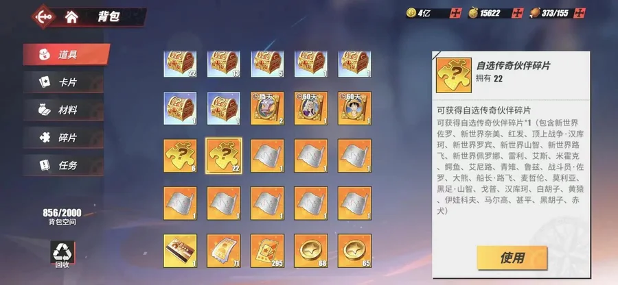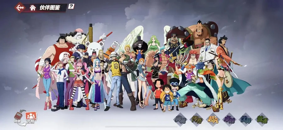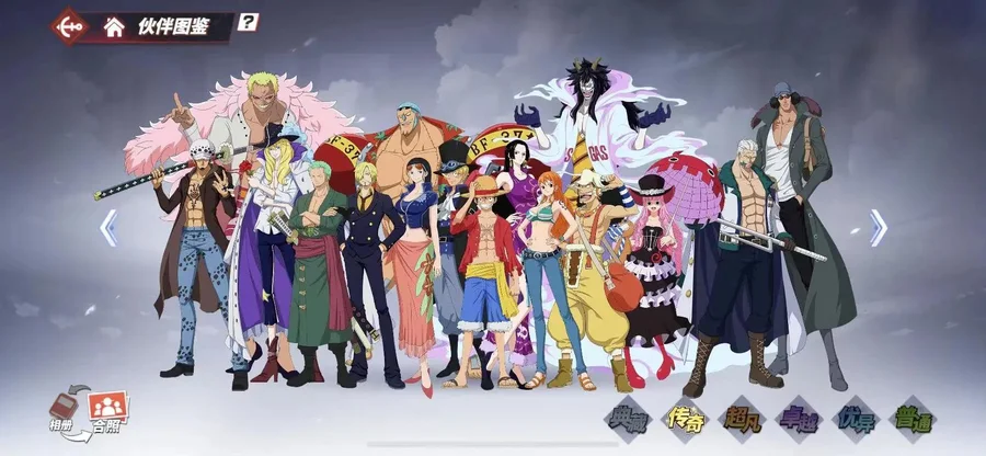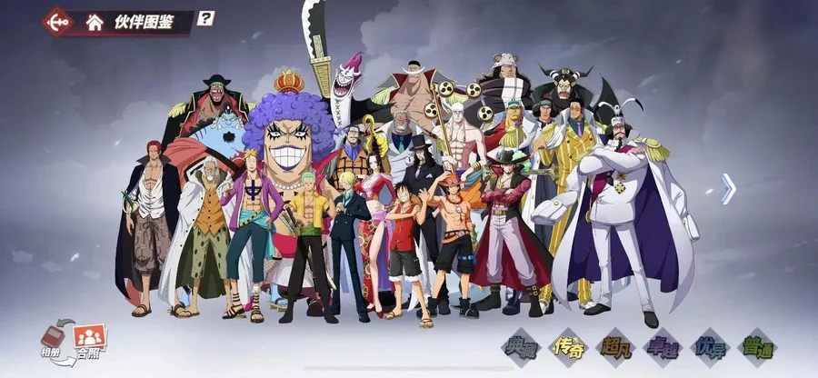 傳奇伙伴:4擋·彈力人·路飛 海盜貴公子·凱文迪修 天夜叉·多弗拉門戈 海軍中將·戈普 瘋狂科學家·凱撒·庫朗 革命軍參謀總長·薩波 紅發·杰克斯 新世界·弗蘭奇 新世界·庫贊 新世界·煙鬼 新世界·羅 船長·路飛 新世界·羅賓 黑足·山智 新世界·路飛 戰斗員·佐羅 新世界·山智 海軍大將·黃猿 海軍元帥·戰國 “毒人”·麥哲倫 海軍大將·青雉 海軍大將·赤犬 CP9·魯茲 鷹眼·米霍克 王下七武海·鱷魚 暴君·大熊 王下七武海·莫利亞 海俠·甚平 女帝·波爾·漢庫珂 四皇·白胡子 “不死鳥”·馬爾高 王下七武海·黑胡子 海盜王的右臂·雷利 火拳·艾斯 “神”·艾尼路 女王·伊娃科夫 新世界·佩羅娜 頂上戰爭·波爾·漢庫珂
