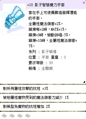 +10 影子智慧魔力手套[抗全3%/抗無型怪2%]