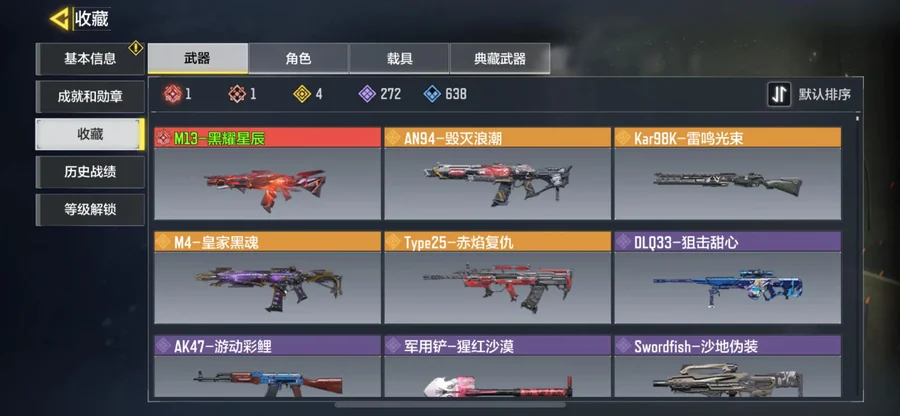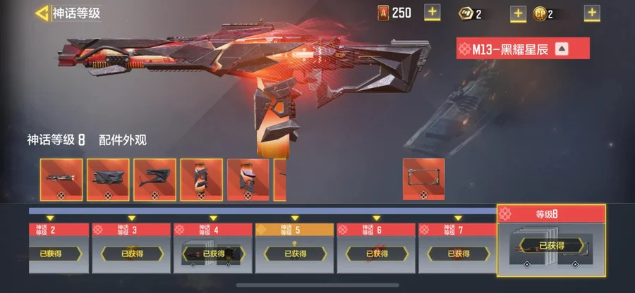 槍械皮膚:可二次1紅1滿4橙黑曜星辰雷鳴光束