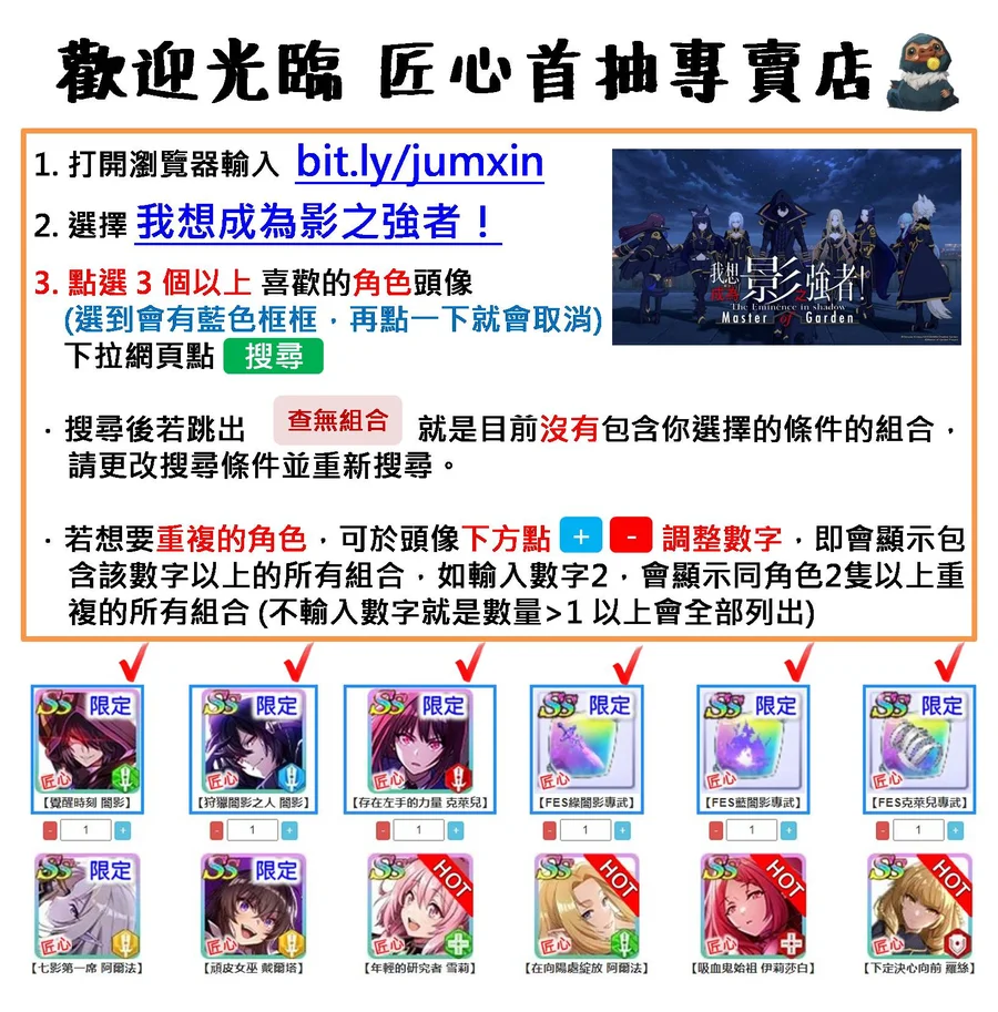 1. 進入網址 【 bit.ly/jumxin 】 查詢組合