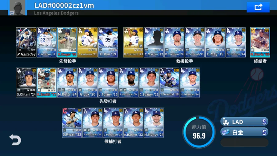 11 C.Kershaw白金簽+69 B.Singer白金簽+77 R.Smith白金簽+23 B.Graterol金簽+22 T.Anderson金簽+卓越黑鑽 R.Halladay 3000