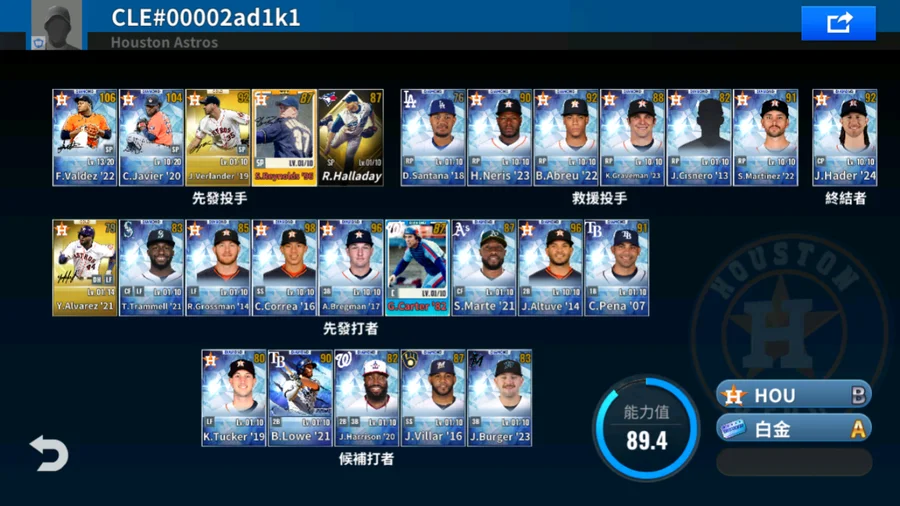 22 F.Valdez白金簽+20 C.Javier白金簽+21 Y.Alvarez金簽+19 J.Verlander金簽+96 S.Reynolds金簽+卓越金 R.Halladay 3500