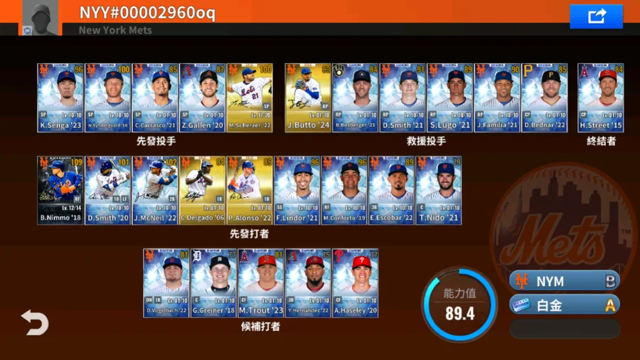 18 B.Nimmo黑鑽簽+20 D.Smith白金簽+22 J.McNeil白金簽+06 C.Delgado 金簽+22 M.Scherzer金簽+22 P.Alonso金簽+24 J.Butto金簽 4000