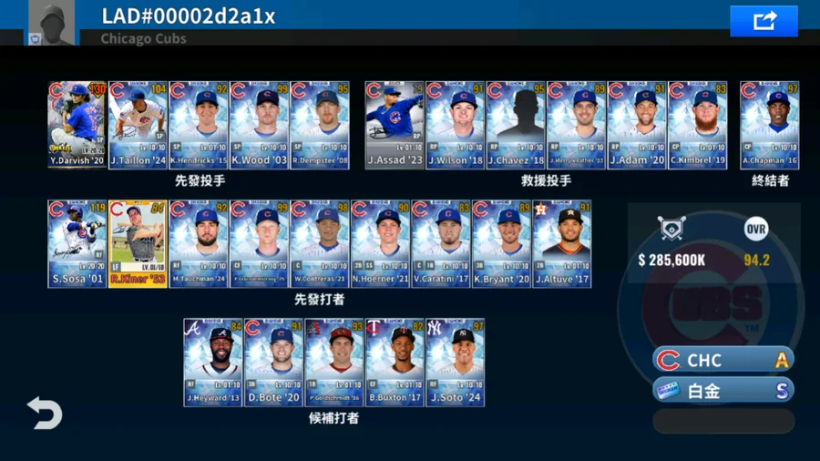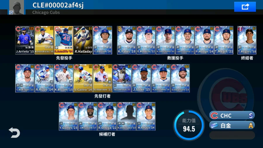 15 K.Bryant白金簽+14 A.Rizzo白金簽+14 S.Castro金簽+15 J.Arrieta黑鑽簽+84 R.Sutcliffe金簽+16 K.Hendricks金簽+23 N.Hoerner金簽+卓越金 R.Halladay+1球選簽 4500