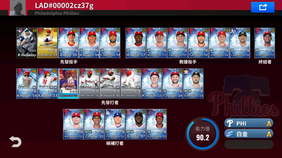 20 Z.Wheeler金簽+19 B.Harper白金簽+23 A.Bohm白金簽+06 R.Howard銀簽+20 A.McCutchen銀簽+21 A.McCutchen銀簽+99 M.Lieberthal白金簽+23 N.Castellanos銀簽+卓越銀 R.Halladay 4000