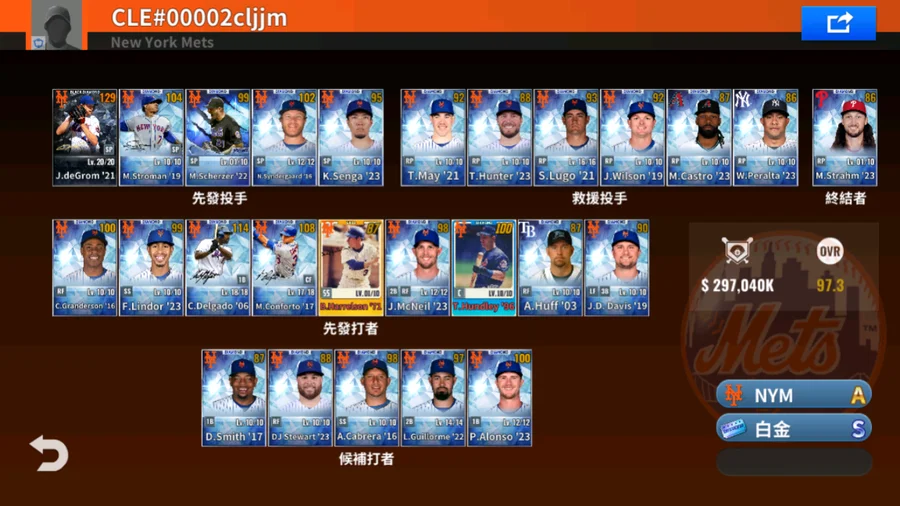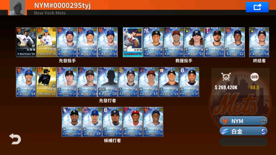 20 J.deGrom白金簽+23 A.Ottavino白金簽+21 J.Villar白金簽+71 B.Harrelson金簽+17 T.d'Arnaud金簽+19 P.Alonso金簽+22 M.Scherzer金簽+卓越白金 R.Halladay 3600