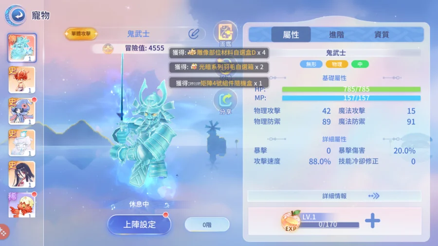【初始號】推薦【旅夢人1】/25等男劍士/神兔歡歡+鬼武士+夜羽+正氣熊貓+宇宙+黑天鵝