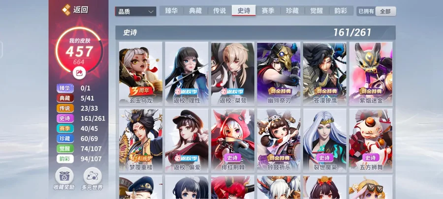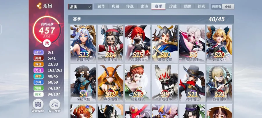 描述:開服賬號,皮膚數量可觀,有初意白狼皮,聯動式神齊全。鎏金9獎勵已領。