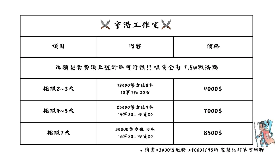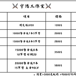 宇浩工作室控號、開荒,配將建議等等 價目表最後一張
