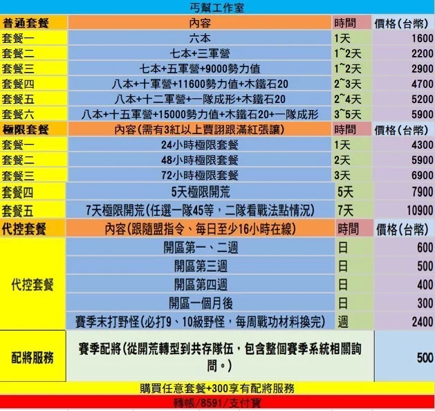 三戰代開龍虎賽代打12月有位 控號、開荒,配將建議等等 價目表最後一張
