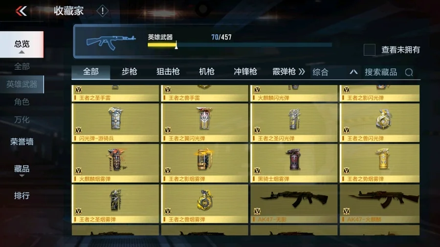 王者之魂,王者之心,王者之魄,王者之翼閃光彈,王者之獸閃光彈,王者之影煙霧彈,王者之獸手雷,王者之獸煙霧彈,王者之鋒,王者之聖手雷,王者之隱,王者之聖煙霧彈,王者之怒,王者之聖閃光彈,王者之魄-冠軍珍藏,王者之勢煙霧彈,王者之跡,王者之影閃光彈,王者之騰,王者之仞