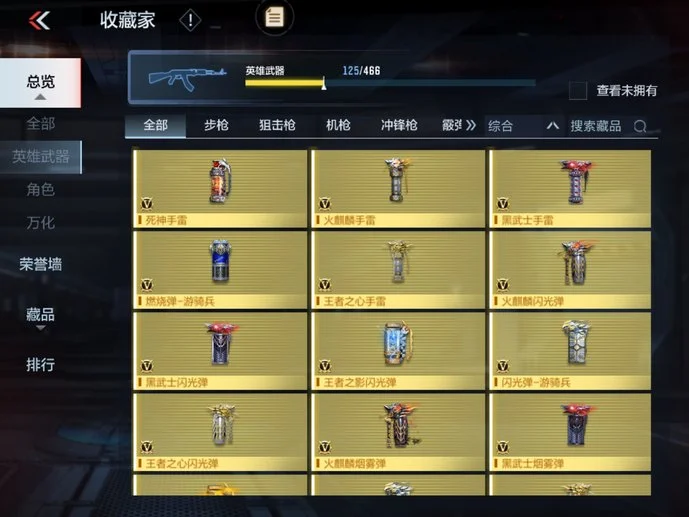 王者之魂,王者之心,王者之魄,王者之影煙霧彈,王者之烈,王者之鋒,王者之心煙霧彈,王者之心手雷,王者之心閃光彈,王者之影,王者之擊,王者之翼,王者之影閃光彈