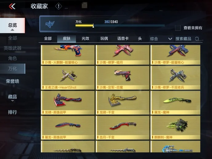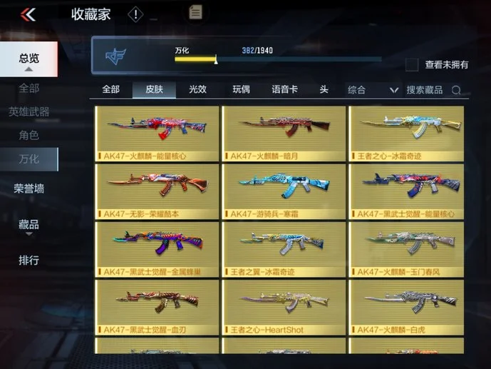 巴雷特-槍娘,SCAR-幽暗騎士,劍齒虎-炫彩,QCW05-未來戰士,M14EBR-暗夜,雙截棍-金色薔薇,AK47-華夏傳說,地獄烈炎,耀金雷刃,百戰巾幗槍,戰斧-無影,死神手雷,AWM-裁決,M4A1-黑龍,AK47-心動次元覺醒,巴雷特-毀滅,USP-神罰,地獄烈櫻·二覺,屠龍,巴雷特-極光,M4A1-Rush-夜襲,AK47-無影,M4A1-雷神,斬神刀,QBZ03-金色薔薇,M4A1-死神,加特林-堡壘,黑武士手雷,方天畫戟,沙鷹-無影,MK5-機械紀元,煙霧彈-雷暴,AK47-變色龍,神罰戰斧,星芒,AK47-血武士,M4A1-沙漠領主,RPK-赤炎盤龍,AK47-火麒麟,黑武士煙霧彈,M4A1-星象,AA12-雷神,AK47-角鬥士,M4A1-賽博雷神,AK47-冰魂覺醒,9A91-天神,GLOCK18-武聖,AK47-機械迷城,擎天覺醒,女皇利刃-幻獸,AK47-黑武士覺醒,暗殺神,QBZ03-死神,M4A1-夏清覺醒,AK47-沙漠領主,煙霧彈-遊騎兵,M200-心動次元覺醒,唐刀-大唐榮耀,M4A1-黑騎士,M4A1-君威GS,QSZ92-金色薔薇,QBZ95-天使,黑武士閃光彈,QSZ92-天使,沙鷹-天神,雙持斯泰爾-天使,巴雷特-雷神,斬魔劍-天使,QBZ95-幻獸,火麒麟煙霧彈,地獄火,M4A1-心動次元覺醒,AWM-天龍,火麒麟手雷,M4A1-遊騎兵,M4A1-玫瑰精靈,鐵鍬-遊騎兵,加特林-煉獄,AK47-遊騎兵,黑騎士煙霧彈,MK5-極光,AK47-櫻鬥士-二覺,燃燒彈-遊騎兵,M4A1-雷神-蘿拉,火麒麟閃光彈,M4A1-運輸船,尼泊爾-火麒麟,嗜血金鯊,閃光彈-遊騎兵,M4A1-龍血,AN94-超新星,M4A1-櫻龍·超覺,AUG-機械紀元,加特林-堡壘覺醒,雙持沙鷹-亞龍,沙鷹-火麒麟,09式狙-天神,血月,寒霜烈龍,沙鷹-修羅,馬來劍-毀滅,左輪-黑武士覺醒,血陽,M4A1-海騎士,麒麟刺,龍嘯,AK47-黑鯊,蟒蛇-奉先,QBZ03-湮滅,柯爾特-仲達,MR1-龍吟驚滄海