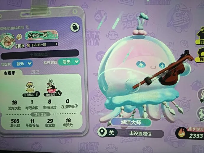 作業系統:Android - 安卓系統所屬遊戲:蛋仔派對> 網易官方> 蛋仔島> 網易帳號角色等級:30性別:女歷史潮流度:1,6451賽季潮流度:2353當前段位:三階雞蛋帳號型別:手機帳號帳號來源:自己註冊典藏盲盒:水母尤萊亞,仔仔熊,虎皮卷大灰狼,倉鼠米仔,淘氣丸子聯動紫皮:雪王,呆呆鳥至臻盲盒數量:0典藏盲盒數量:9描述:太多了所以有好多造型都沒有照,第一張是我大概充值的得到的造型,還有企鵝,火龍果這類的