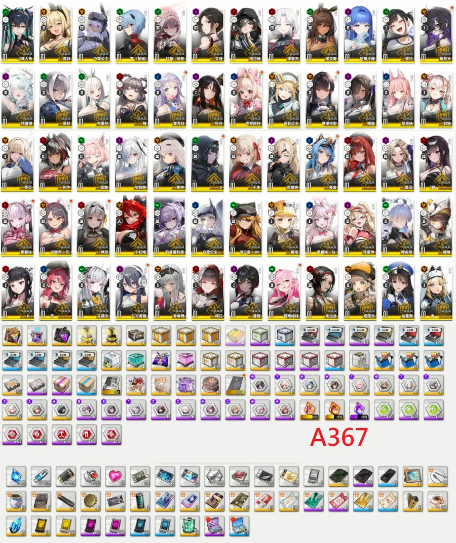 【A367】台港澳【5500元】86SSR【莉可麗絲:錦木千束+莉可麗絲:井之上瀧奈+白雪公主(重型武裝)+娜由塔+莉貝雷利奧+小美人魚+拉毗(小紅帽)+小紅帽+灰姑娘+暗影紅蓮+米哈拉+格拉維+神罰x2+桃樂絲+長髮公主+諾雅+白雪公主+純潔長髮x4(3星)+鐘鳴x4(3星)+惡靈古堡:艾達+Eva:明日香(WILLE)+Eva:零(暫稱)+麗塔x2+薇爾維特x2+蕾貝兒x2+露姬+殺手妻子D+海倫x4(3星)+愛麗絲x4(3星)+馬斯特(女僕)+蒂亞(白JK)+娜嘉(黑JK)+布蘭兒(白兔)+諾亞爾(黑兔)+德雷克+霜月索琳+阿爾卡娜+特蕾娜+愛因+豺狼+牡丹+兔女郎米爾克x3+克雷伊+艾德米+艾可希雅x2+普琳馬+櫻花+克拉烏+諾薇兒+迪賽爾+兔女郎愛麗絲+索琳+Dx2+吉羅婷+貝伊+克勞斯特x3+瑪律恰那x2+萊昂娜+富克旺x2+楊+索拉+露菲+莫莉x4(3星)】