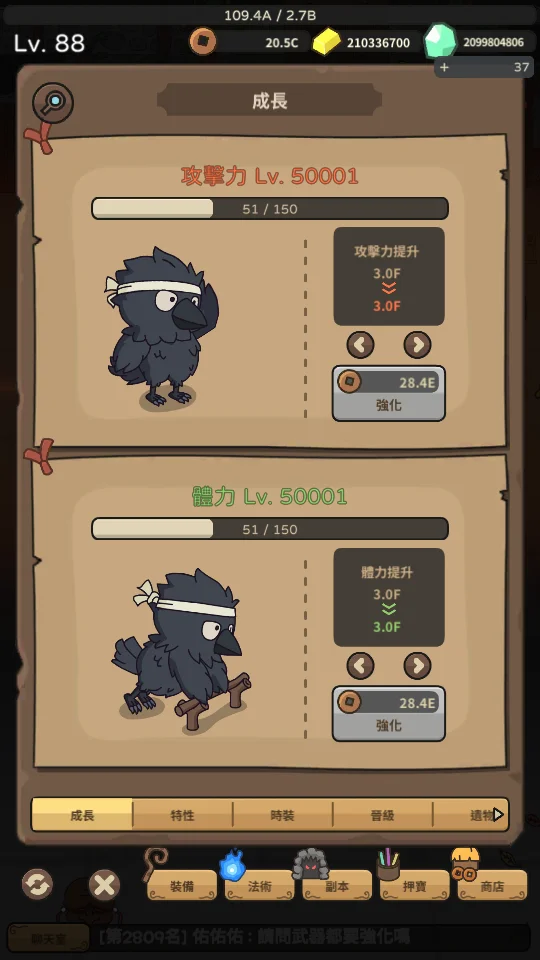 5萬攻擊力 + 5萬體力 = 200元