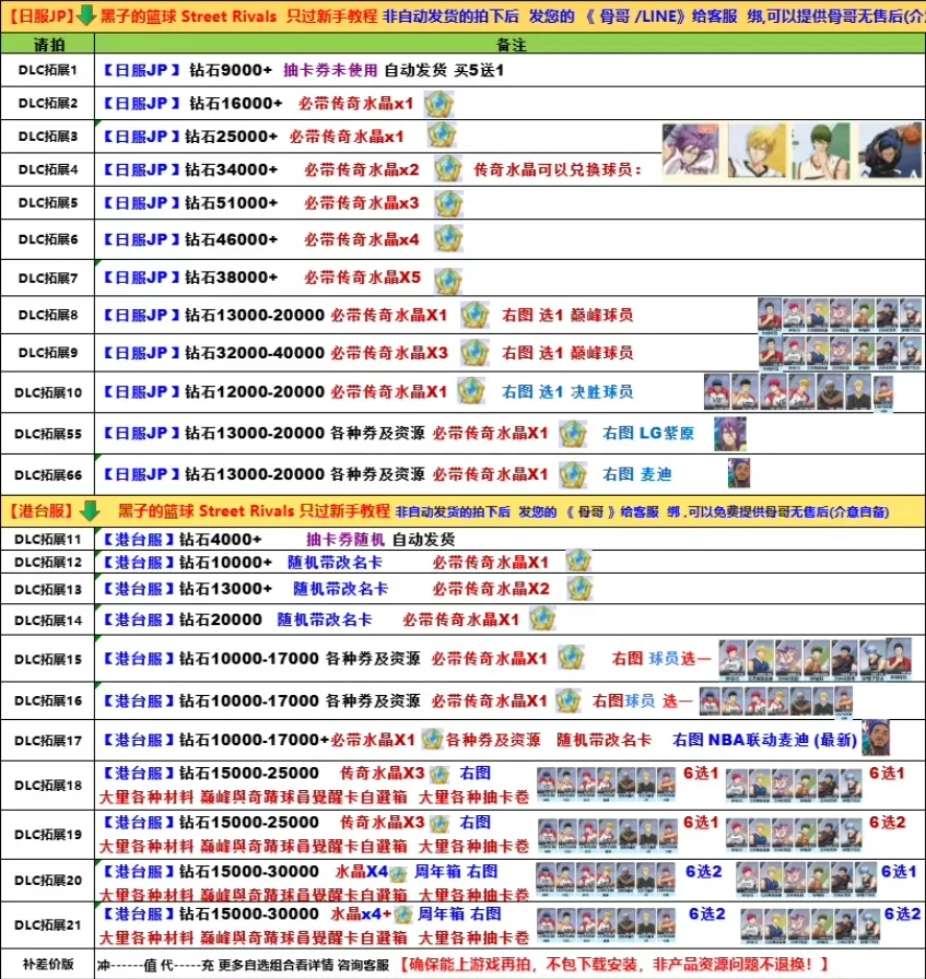 全 8591 首家 黑子的籃球 Street Rivals初始號日服自抽號0開賽自選號