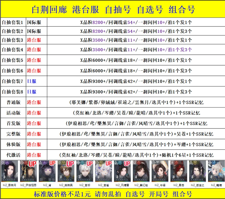 全 8591 首家 白荊迴廊初始號自抽號自選成品號安卓岑櫻ios官B服人物組合開局號
