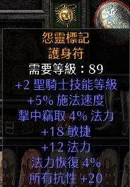 項鍊:+2聖技5高施c4法18敏12法力+法力恢復4%+20全抗(等級90) 280