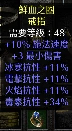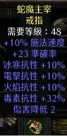 項鍊:2死靈10高施12法力+法力恢復6%+20全抗(89級) 220