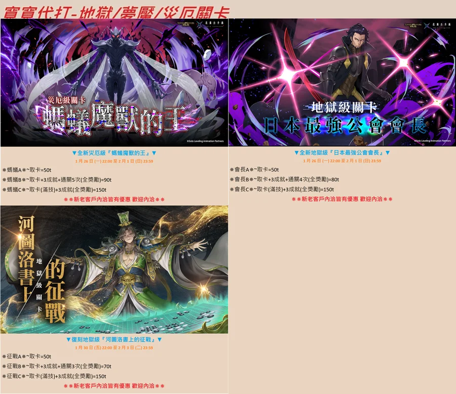 1.代打期間請勿登入 如有特殊需求可以跟我們說