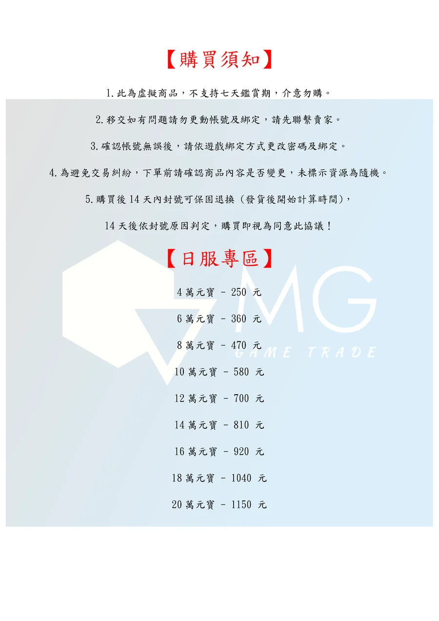 14天後依封號原因判定,購買即視為同意此協議!