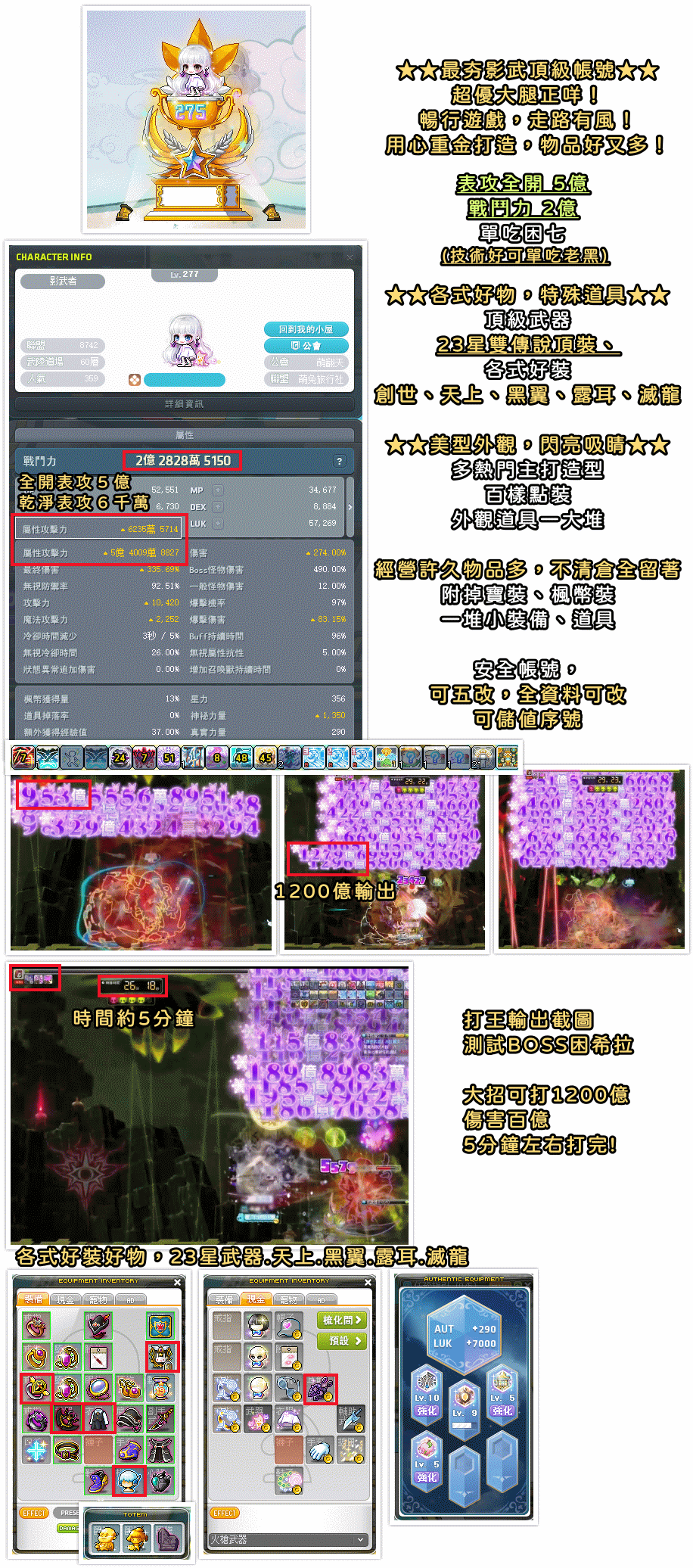 👑頂級神帳👑表攻5億。大腿級美女。影武者輕鬆吃王。23星。創世。天上黑翼露耳