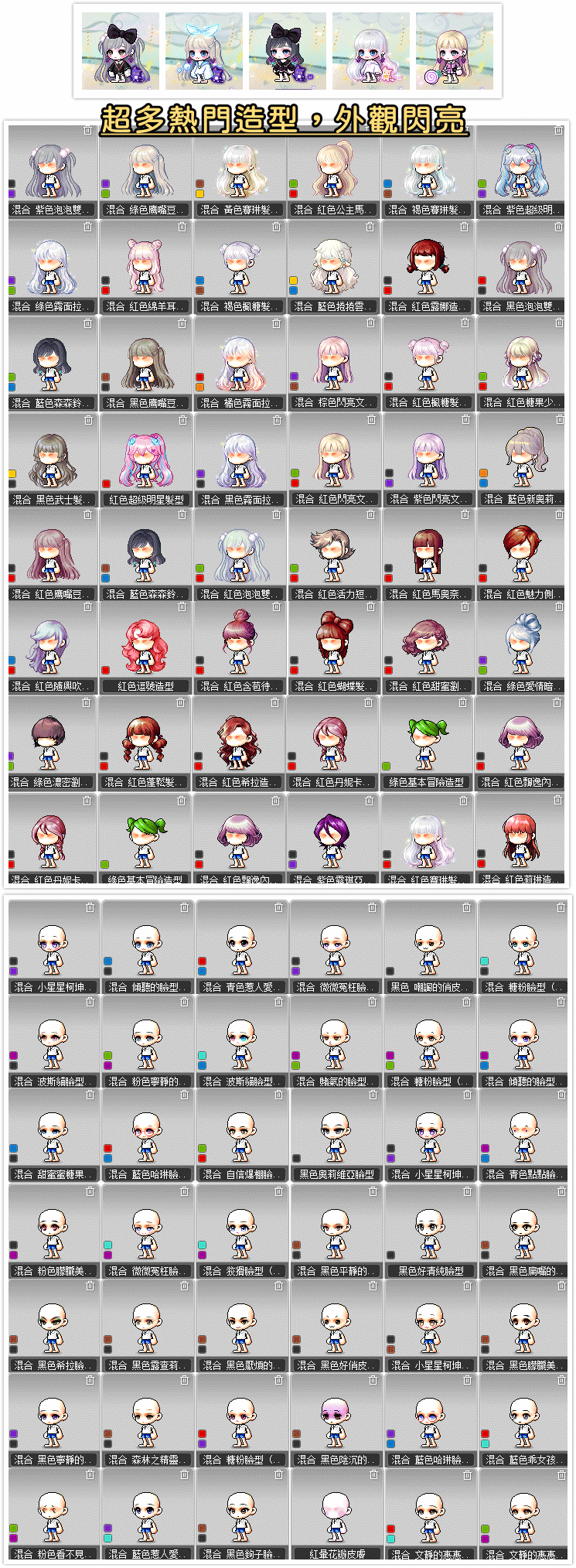 有剋金抽造型(頭&臉都有抽),多款熱門漂亮(難抽)造型