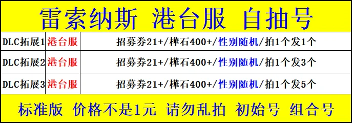 全 8591 首家 雷索納斯初始自抽號蘋果ios0安卓B站服官服亞莉奈獅鬃組合開局號