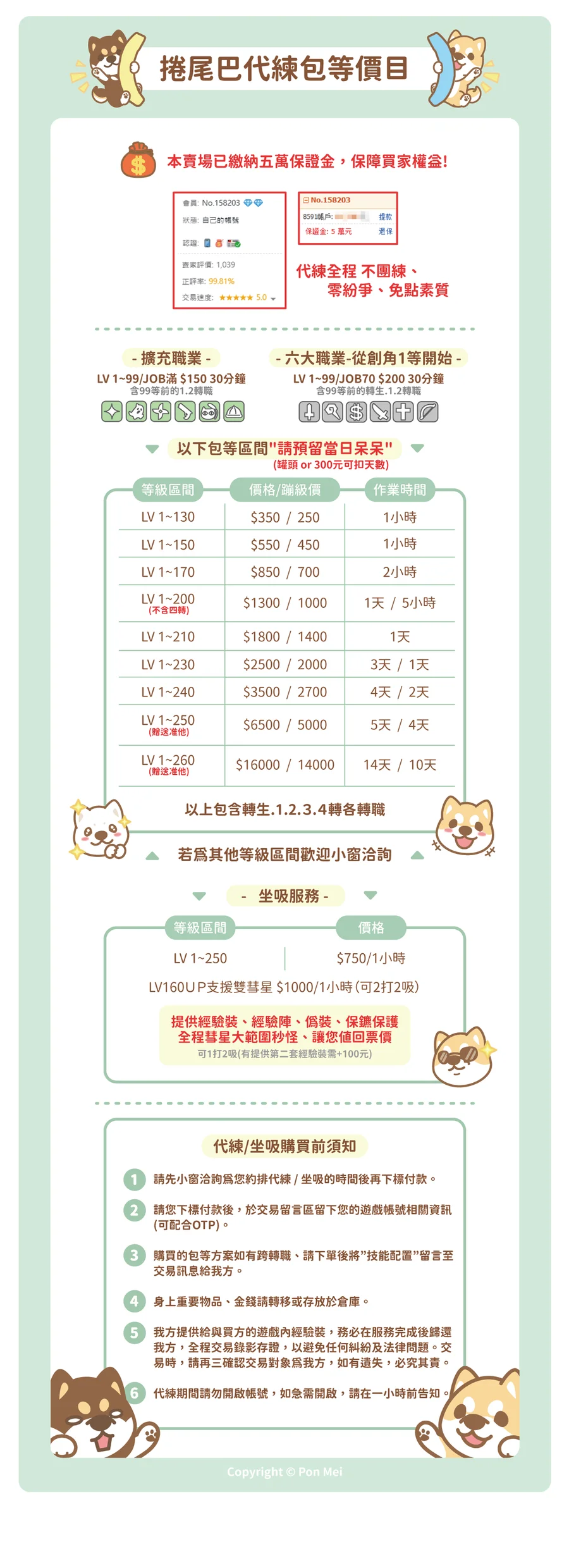 請在交易訊息內提供以下代練資料