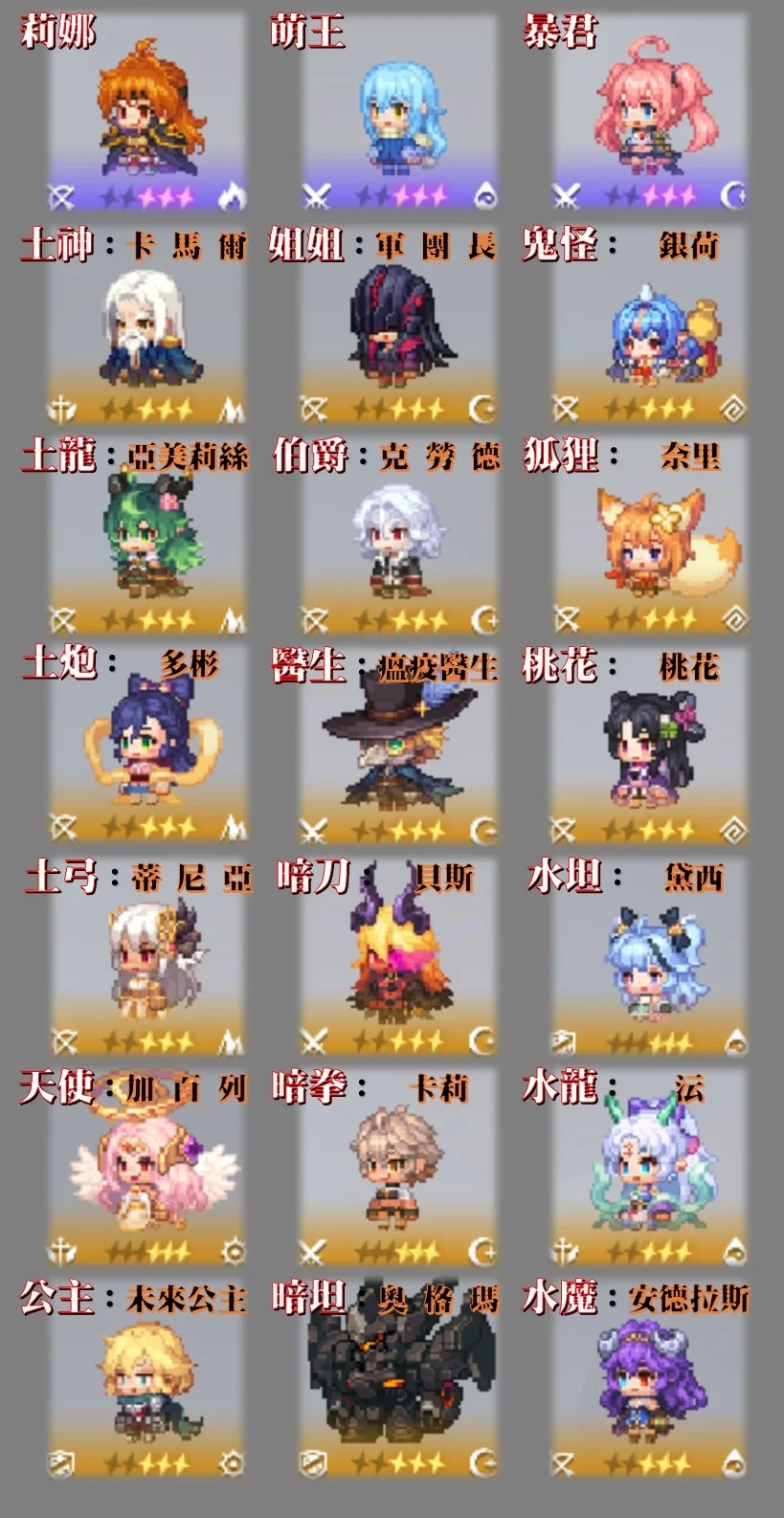 『芙莉蓮連專/萌王連專/莉娜連專/鬼怪連專/土神連專/土龍連專/土炮連專/姐姐連專/伯爵連專/醫生連專/暗刀連專/暗拳連專/水坦連專/水龍連專/水魔連專/火補連專/隨機其它連專』