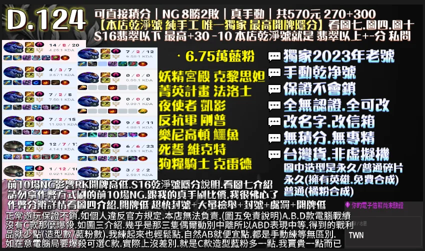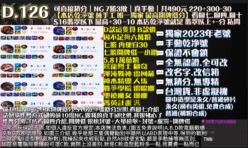 👉10場NG 好KDA+保8勝+工時6H,有現貨,也可指定帳號代刷