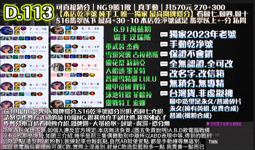 | 代刷10場NG保8勝+10把好KDA.即可拉高開牌隱分 |