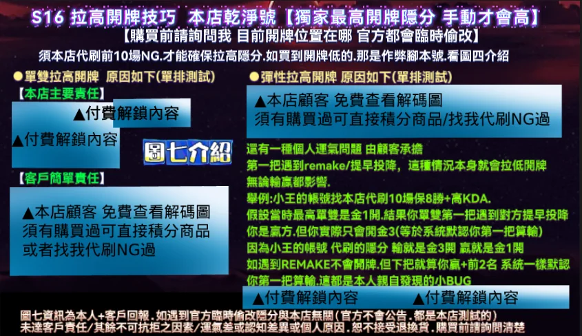 | 真手工代刷10場NG 好KDA+保8勝+6小時=拉高開牌隱分 |