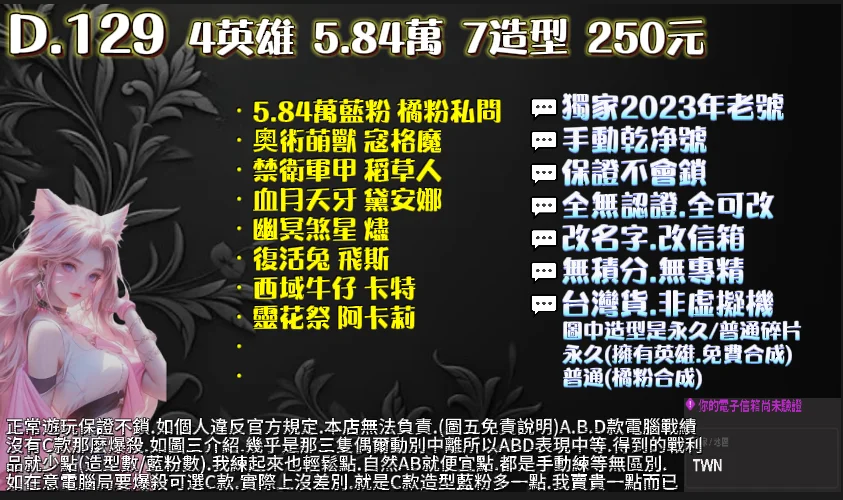 🔹台灣貨 自產自銷:註冊時填寫的生日 信箱 每隻都不同,不怕盜號找回(如一樣會被盜號 詳情問我)