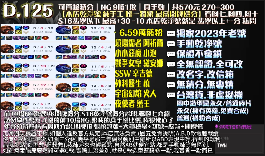 👉10場NG KDA差+盡力輸+工時6H,有現貨,也可指定帳號代刷