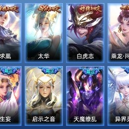花木蘭-瑞麟志,鍾無豔-王者之錘,蒙恬-榮光聖徽,王昭君-鳳凰于飛,甄姬-遊園驚夢,貂蟬-逐夢之音,花木蘭-默契交鋒,蘭陵王-馴魔獵人,狄仁傑-魔術師,百里玄策-原初追逐者,孫悟空-至尊寶,楊玉環-遇見飛天,花木蘭-青春決賽季,甄姬-幽恆,百里守約-朱雀志,關羽-冰鋒戰神,后羿-輝光之辰,趙雲-引擎之心,鬼谷子-五穀豐年,馬可波羅-暗影遊獵,裴擒虎-天狼狩獵者,韓信-逐夢之影,羋月-白晶晶,安琪拉-乘龍·聚寶船,夢奇-頑趣,馬超-神威,馬可波羅-山海·玄木吟,蔡文姬-繁星吟遊,干將莫邪-冰霜戀舞曲,元歌-無心,上官婉兒-梁祝,趙雲-皇家上將,李元芳-銀河之約,嬴政-白晝王子,魯班七號-獅舞東方