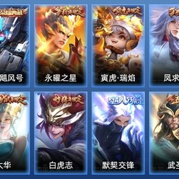 公孫離-祈雪靈祝,虞姬-啟明星使,關羽-武聖,諸葛亮-時雨天司,孫悟空-零號·赤焰,蘭陵王-默契交鋒,百里玄策-白虎志,楊戩-永曜之星,李白-鳳求凰,呂布-天魔繚亂,孫尚香-異界靈契,伽羅-太華,魯班七號-寅虎·瑞焰
