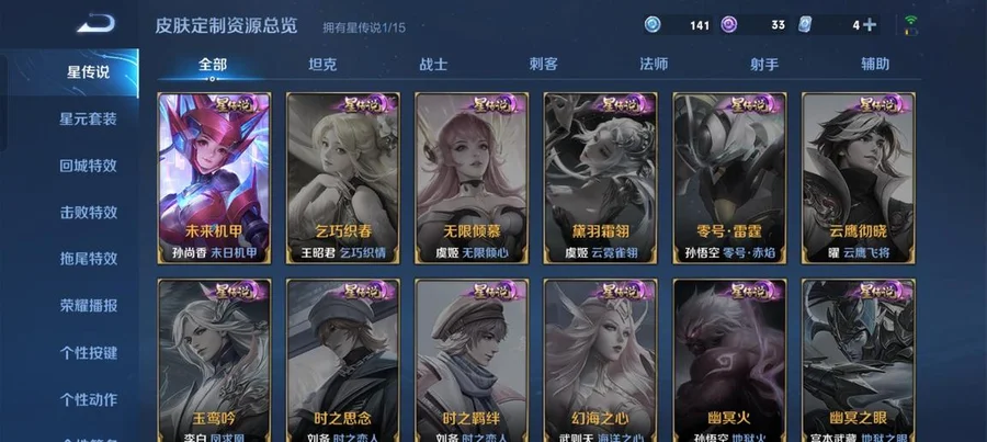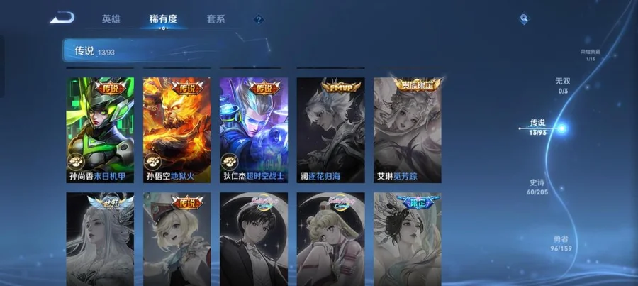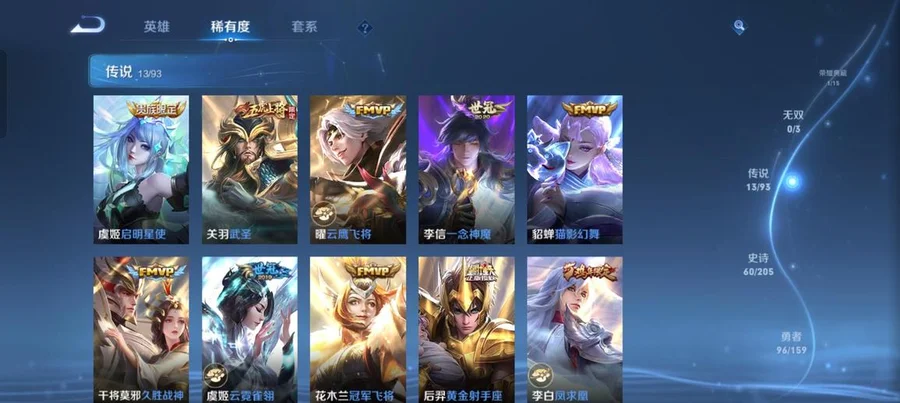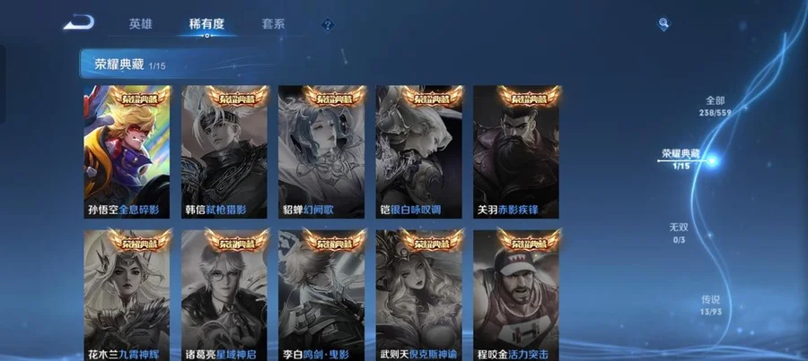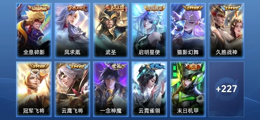 蘭陵王-隱刃,張飛-亂世虎臣,李元芳-特種部隊,花木蘭-劍舞者,女媧-尼羅河女神,豬八戒-潮玩探月行,明世隱-虹雲星官,王昭君-幻想奇妙夜,夢奇-美夢成真,沈夢溪-棒球奇才,張良-幽蘭居士,哪吒-三太子,關羽-天啟騎士,李信-灼熱之刃,楊玉環-霓裳曲,大喬-守護之力,裴擒虎-街頭旋風,海月-幻泉霧影,高漸離-金屬狂潮,豬八戒-年年有餘,呂布-野性能量,狄仁傑-錦衣衛,鏡-冰刃幻境,萊西奧-西部遊俠,老夫子-潮流仙人,李元芳-妄想特派,亞瑟-死亡騎士,老夫子-功夫老勺,劉備-潮玩造夢師,亞瑟-心靈戰警,宮本武藏-永珍初新,孫悟空-西部大鏢客,趙懷真-太極少年,雲中君-荷魯斯之眼,墨子-金屬風暴,瀾-孤獵,蒙犽-胡桃狂想曲,程咬金-功夫廚神,趙雲-未來紀元,諸葛亮-星航指揮官,鬼谷子-阿摩司公爵,魯班大師-乓乓大師,甄姬-冰雪圓舞曲,露娜-緋紅之刃,韓信-街頭霸王,韓信-白龍吟,孫策-海之征途,曜-歸虛夢演,墨子-龍騎士,孫臏-歸虛夢演,伽羅-花見巫女,蘭陵王-暗隱獵獸者,百里守約-絕影神槍,典韋-黃金武士,盾山-圓桌騎士,孫尚香-水果甜心,曹操-死神來了,呂布-末日機甲,甄姬-花好人間,狄仁傑-鷹眼統帥,沈夢溪-鯊炮海盜貓,魯班七號-黑桃隊長,米萊狄-精準探案法,周瑜-海軍大將,劉備-漢昭烈帝,雅典娜-冰冠公主,姜子牙-時尚教父,劉禪-英喵野望,嬴政-搖滾巨星,劉禪-秘密基地,弈星-踏雪尋梅,黃忠-芝加哥教父,明世隱-占星師,程咬金-華爾街大亨,李白-範海辛,阿軻-節奏熱浪,李元芳-逐浪之夏,小喬-萬聖前夜,扁鵲-化身博士,蘇烈-愛與和平,魯班七號-福祿兄弟,趙雲-忍·炎影,百里玄策-威尼斯狂歡,阿古朵-熊喵少女,西施-歸虛夢演,雲纓-赤焰之纓,王昭君-精靈公主,妲己-少女阿狸,劉禪-喚靈魔甲,司馬懿-魘語軍師,白起-白色死神,太乙真人-勁辣紅鍋,后羿-精靈王,公孫離-花間舞,魯班大師-歸虛夢演,鎧-曙光守護者,嫦娥-露花倒影,馬超-倖存者,宮本武藏-霸王丸,宮本武藏-未來紀元,孫臏-未來旅行,露娜-紫霞仙子,盾山-極冰防禦線,達摩-大發明家,程咬金-無雙福將,上官婉兒-修竹墨客,項羽-科學大爆炸,張飛-五福同心,司空震-啟蟄,盤古-創世神祝,鬼谷子-幻樂之宴,孫策-貓狗日記,蒙犽-歸虛夢演,安琪拉-心靈駭客,橘右京-修羅,虞姬-加勒比小姐,牛魔-牛運亨通,劉禪-天才門將,李白-千年之狐,關羽-龍騰萬里,韓信-教廷特使,莊周-奇妙博物學,蒙恬-秩序獵龍將,狂鐵-命運角鬥場,劉備-紐約教父,露娜-哥特玫瑰,楊戩-次元傲視,干將莫邪-第七人偶,王昭君-偶像歌手,貂蟬-異域舞娘,蔡文姬-薔薇王座,哪吒-次元突破,馬可波羅-激情綠茵,李白-敏銳之力,公孫離-無限星賞官,妲己-魅力維加斯,盤古-重灌意志,張良-繽紛繪卷,張良-古海尋蹤,達摩-拳王,元歌-午夜歌劇院,楊戩-埃及法老,夏侯惇-乘風破浪,鍾馗-地府判官,宮本武藏-鬼劍武藏,成吉思汗-維京掠奪者,廉頗-無盡征程,鍾無豔-海灘麗影,后羿-阿爾法小隊,狂鐵-特工戰影,米萊狄-契約魔法,伽羅-箭羽風息,呂布-聖誕狂歡,鎧-龍域領主,蒙恬-蔚藍守將,太乙真人-圓桌騎士,東皇太一-東海龍王