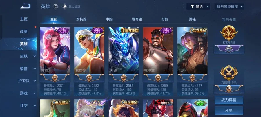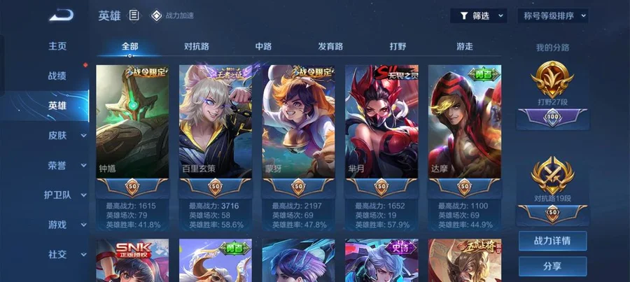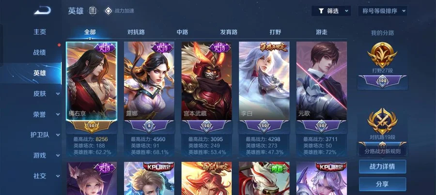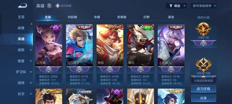 阿軻,魯班七號,盤古,米萊狄,大喬,東皇太一,韓信,豬八戒,亞瑟,西施,李元芳,女媧,孫策,貂蟬,弈星,夏侯惇,程咬金,扁鵲,蔡文姬,狄仁傑,小喬,狂鐵,露娜,楊玉環,盾山,明世隱,張良,司馬懿,鍾無豔,成吉思汗,趙懷真,花木蘭,安琪拉,孫臏,蒙犽,夏洛特,牛魔,鏡,虞姬,李信,哪吒,蘭陵王,元歌,典韋,艾琳,甄姬,劉禪,雅典娜,干將莫邪,夢奇,鬼谷子,海諾,阿古朵,莊周,妲己,項羽,瑤,達摩,后羿,海月,嬴政,馬可波羅,暃,呂布,劉邦,馬超,金蟬,亞連,黃忠,司空震,羋月,白起,太乙真人,娜可露露,瀾,關羽,墨子,百里守約,老夫子,趙雲,魯班大師,伽羅,張飛,朵莉亞,諸葛亮,孫悟空,上官婉兒,姜子牙,孫尚香,雲纓,裴擒虎,不知火舞,姬小滿,萊西奧,楊戩,蘇烈,鍾馗,高漸離,廉頗,公孫離,曜,鎧,李白,蒙恬,劉備,王昭君,橘右京,沈夢溪,百里玄策,雲中君,戈婭,桑啟,嫦娥,宮本武藏,曹操,周瑜
