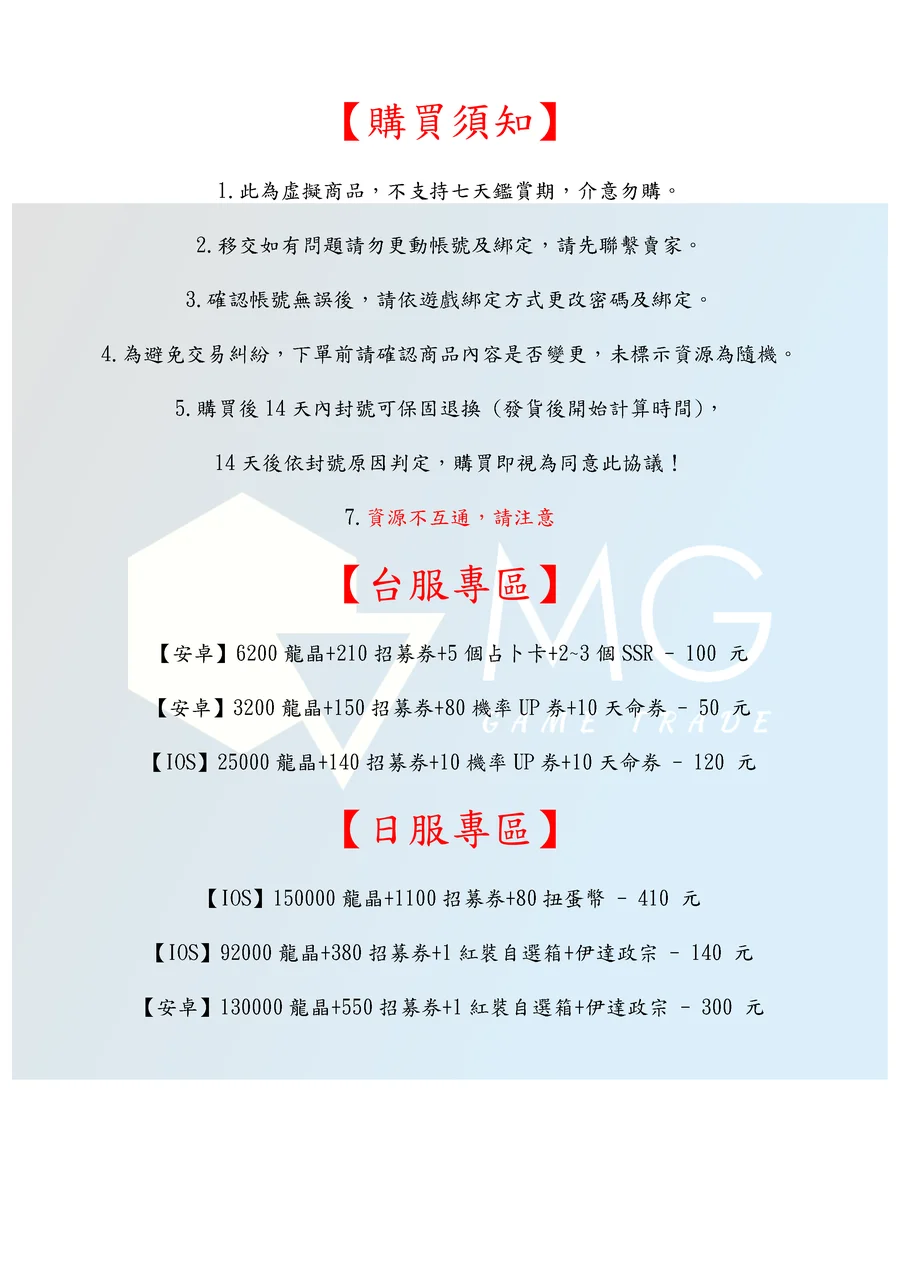 2.此為虚擬商品,不支持七天鑑賞期,如介意請勿購買。