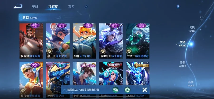 【99等】微信V8 2典藏 16傳說 56史詩 187造型 116英雄 倔強青銅I
