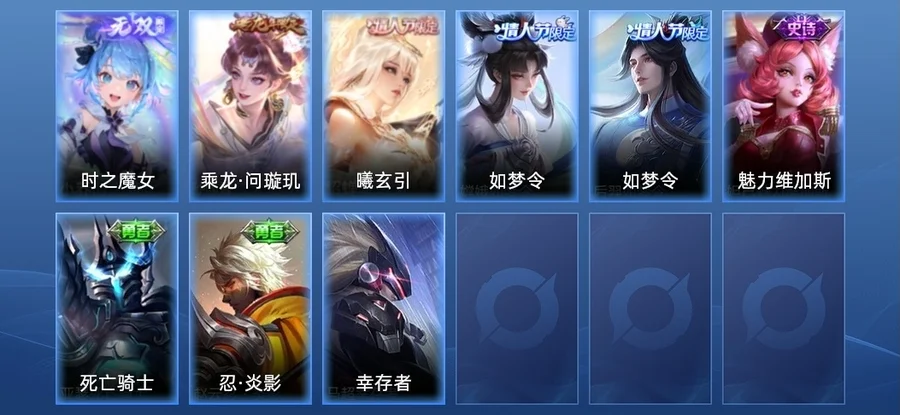馬超-倖存者,亞瑟-死亡騎士,妲己-魅力維加斯,趙雲-忍·炎影