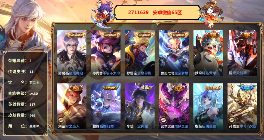 無,魯班七號-星空夢想,孫尚香-殺手不太冷,孫悟空-全息碎影,諸葛亮-星域神啟