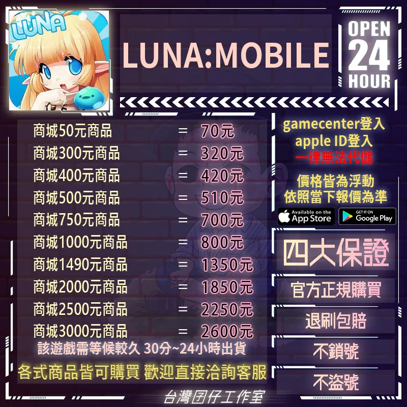 如我方來源有問題導致鎖號,扣查物品等等之問題,我方會承擔在此賣場下單該筆儲值的費用。
